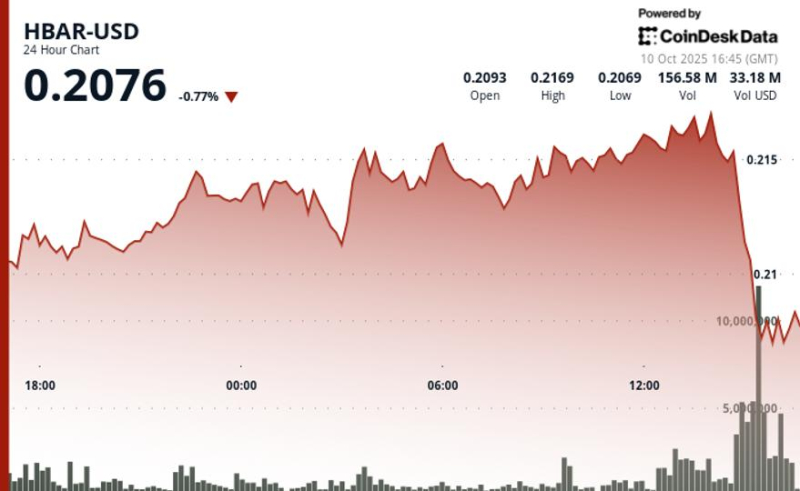 HBAR Tumbles 6% Amid Volume Surge as Wider Market Capitulates